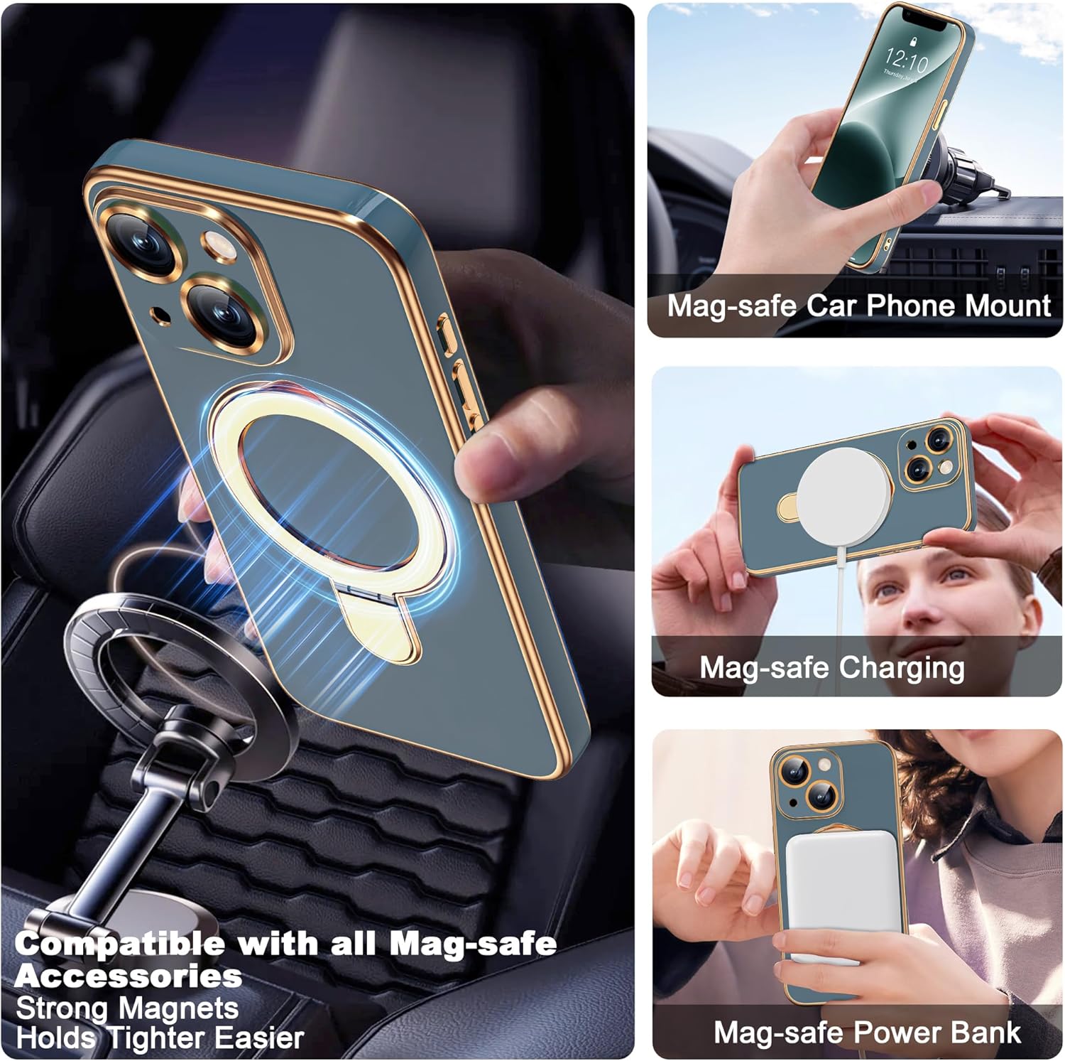 【Strong Magnetism Technology】The magnetic case configure 26 pieces of N52 reinforced magnets, the embedded magnetic ring with 18N magnetic force, can be perfectly aligned and quickly locked, and provide faster and more stable charging. It is flat with the case surface while closed. Use it with a car mount, charger and wallet to enjoy the convenience of mag-safe accessories.