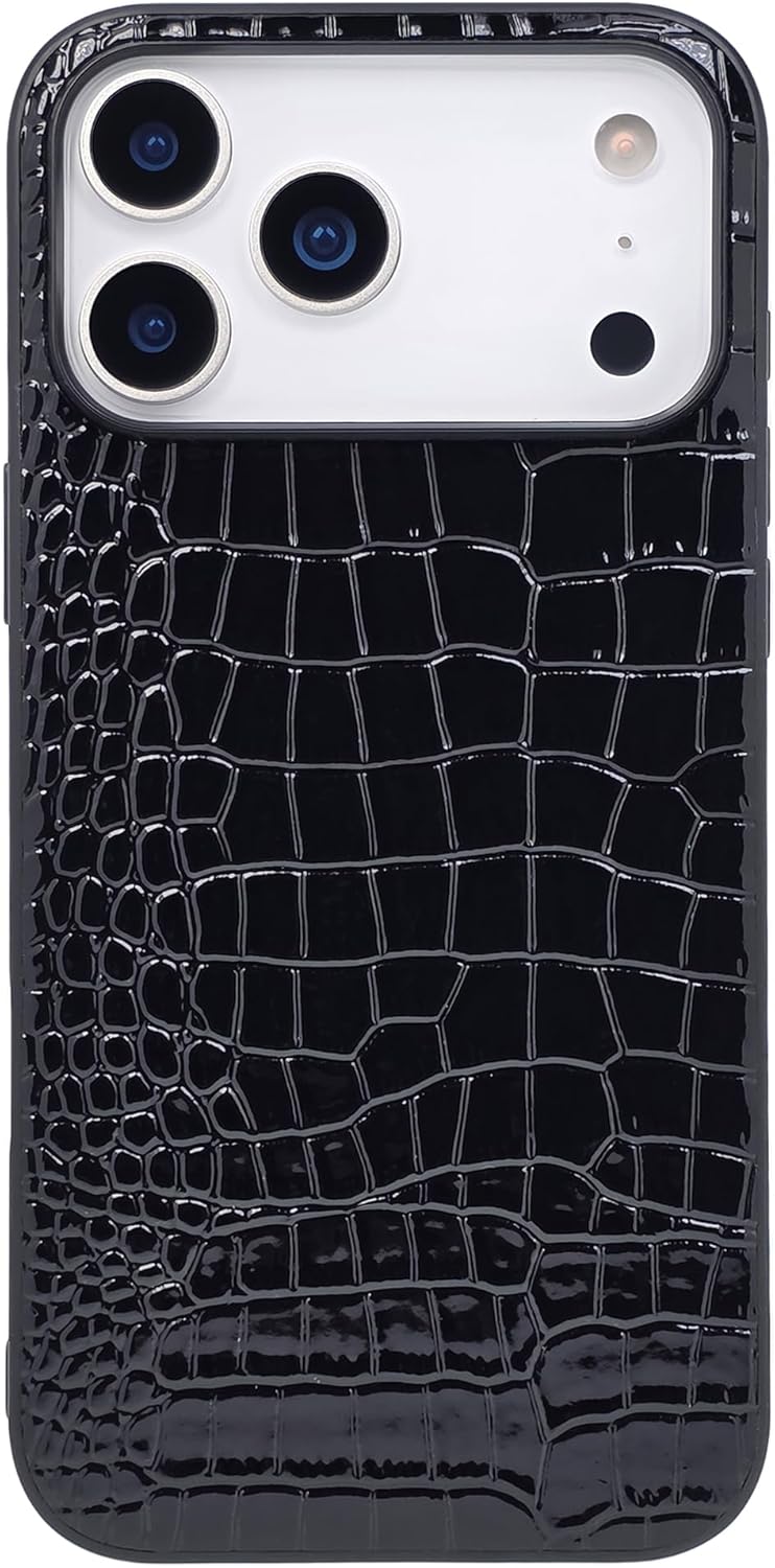 Compatible with iPhone 17 Case for Women, Crocodile Synthetic Patent Leather Cover, Classic Fashion for iPhone17 2025 6.3 Inch – Black