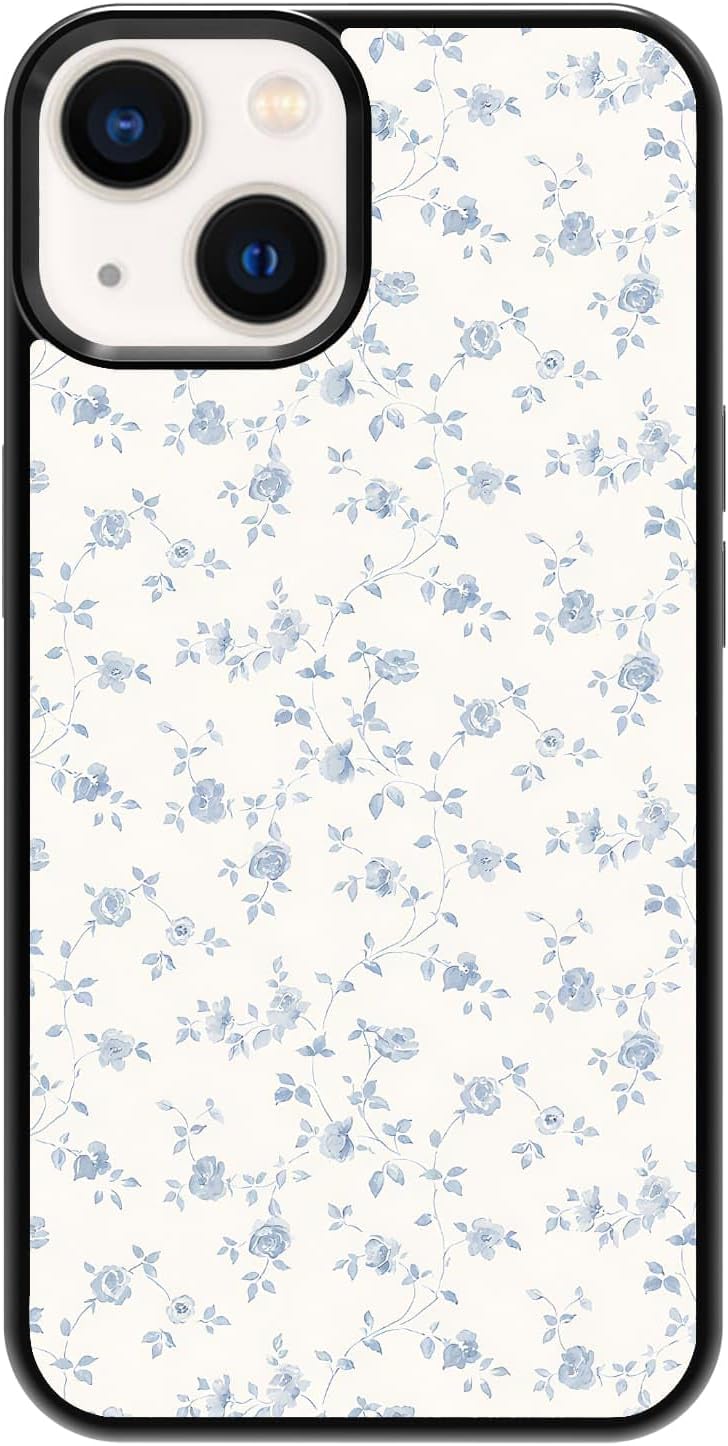 Coquette Aesthetic Phone Case Shockproof Protective Blue Flower Phone Cases for iPhone 13/14