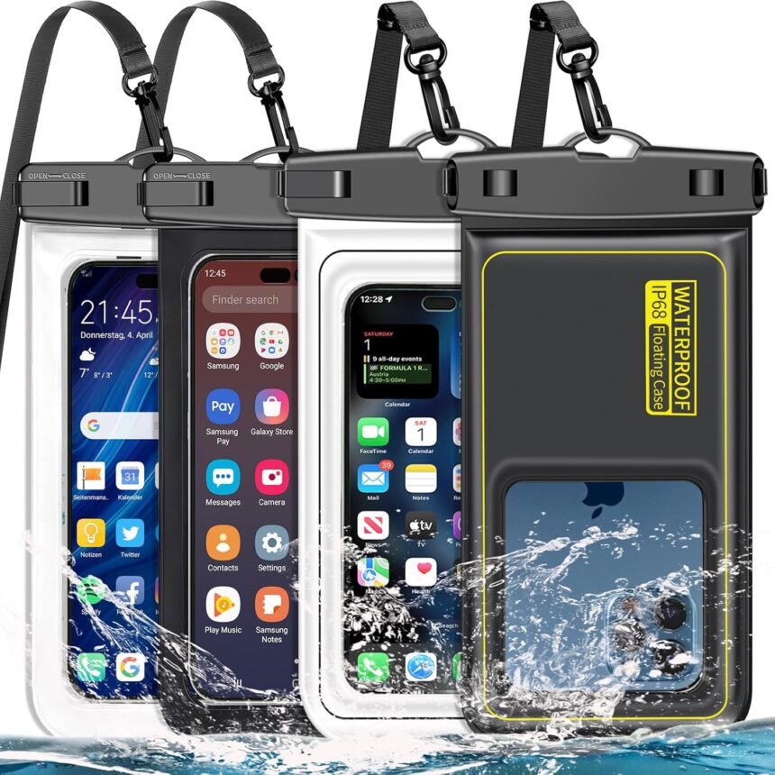 Capacity: It can hold not only cell phones but also ID, credit cards, cash, and keys.Length x Width 8.49″x 4.52″, 3MM crimping blank holder hydraulic resistance. Compatible for phone up to 8.5 inches; ideal phone water protector pouch for Apple iPhone,Samsung,huawei,xiaomi,Almost any cell phone; Sturdy lanyard on the top for easy carrying, Free your hand and have fun!