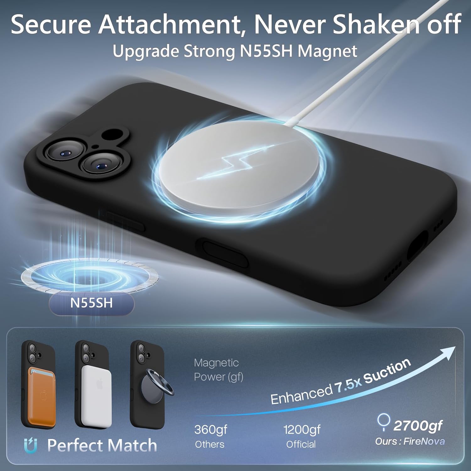 Ultra-Strong N55SH Magnets: Deliver 7.5X Stronger Suction Than normal case for iPhone 17. Compatible with all MagSafe, Ensures Solid Attachment for Magnetic Car Mounts, Magnetic Chargers, and Wallets, etc. Makes faster & safer wireless charging