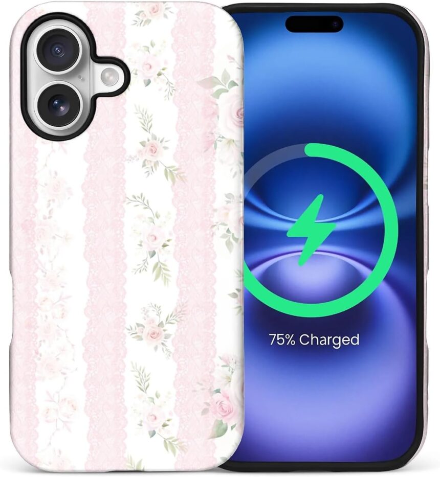 for iPhone 17 Case,Compatible with MagSafe,Dual-Layer Hard Shell + Silicone Cover,Full Body Protection Shockproof Case for iPhone 17-Blushing Floral Chic Coquette