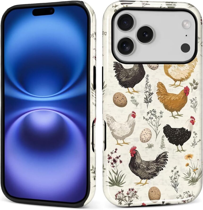 for iPhone 17 Pro Case, Retro Rooster Plant Pattern Glossy 2 in 1 Shockproof Bumper Drop Protective Case for Girl Women Boy Men