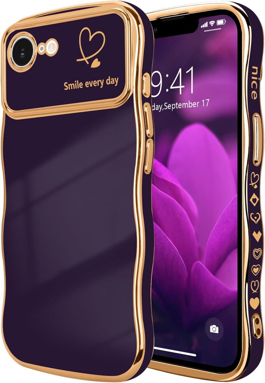 【Compatibility】- Elegant electroplated cute love heart wavy shape case specially designed for iPhone 16e for iPhone 17e 6.1 inch 2025. Support wireless charging.