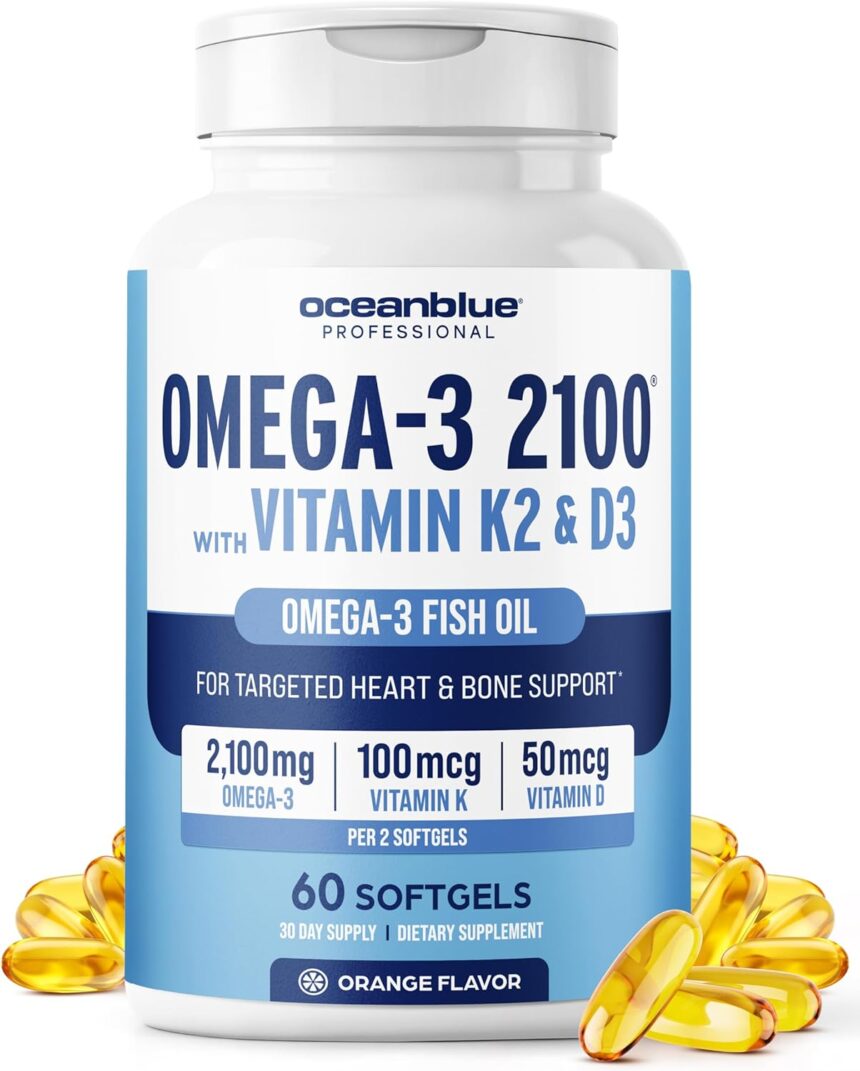3–IN-1 OMEGA-3 SUPPLEMENT: Simplify your wellness routine & reduce your daily supplements intake from three capsules to one. Our Omega-3 fish oil capsules contain 2,100 mg of fish oil per serving, plus 150 mcg of Vitamin K2 and 2,000 IU of Vitamin D3