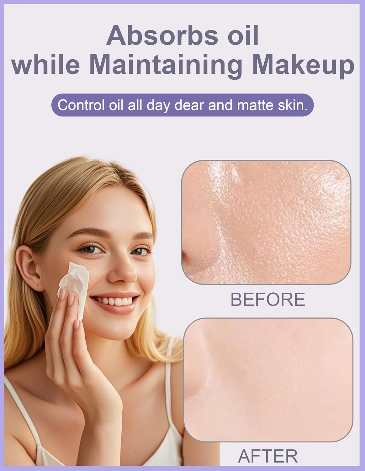 【Perfect for Oily Skin】Say goodbye to shiny skin with our oil blotting paper that quickly absorbs excess oil, leaving your face matte and fresh-looking.