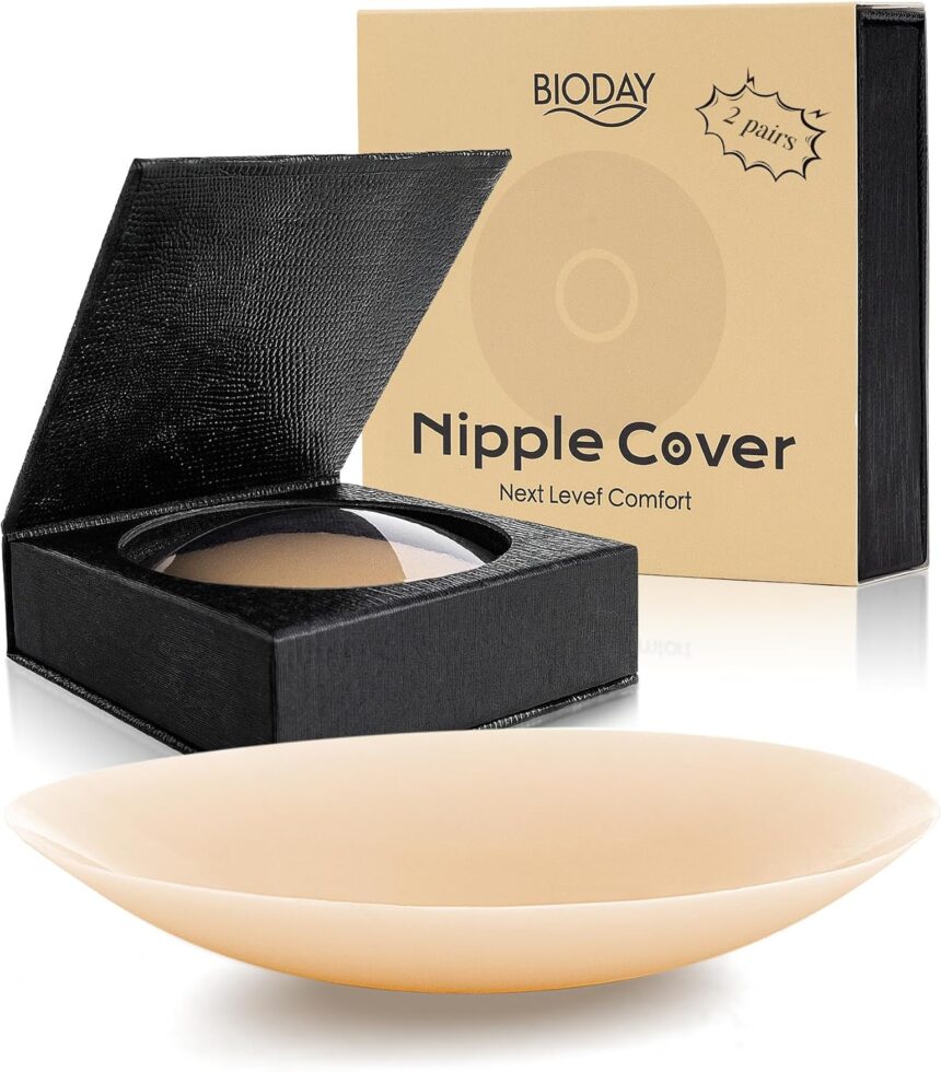 Experience Ultimate Freedom with Invisible Confidence Tired of uncomfortable sticky bras that dig, pinch, and limit your style? Our premium reusable silicone nipple covers deliver flawless coverage, all-day security, and liberating “no-bra” freedom for any outfit. Ditch the straps and underwire while keeping a smooth, polished silhouette—the ultimate nipple covers for women. Why Choose Our Nipple Covers: 1. Truly Invisible Coverage Ultra-thin tapered edges create a seamless “second skin” effect, contouring perfectly to your curves. The matte, no-shine finish of these silicone nipple covers reusable stays undetectable under any clothing—even white tees and sheer fabrics. No more embarrassing lines or outlines. 2. Pain-Free NON-adhesive Center Our exclusive non-stick center protects your most sensitive skin. It ensures zero painful pulling or tugging during removal, offering gentle, irritation-free wear while the secure outer adhesive ring keeps everything firmly in place. 3. Hypoallergenic & Weightless Comfort Made from 100% medical-grade, hypoallergenic silicone and dermatologist-tested for sensitive skin. These nipple covers lifting are so lightweight and breathable, you’ll forget you’re wearing them. Experience all-day comfort without irritation. 4. Reusable & Easy Care Washable and reusable up to 30+ times. Simply hand wash with mild soap, air dry, and the adhesive renews itself. Includes a compact travel case for on-the-go convenience, making it a sustainable and economical nipple cover solution. 5. For Infinite Outfits The perfect bra alternative for backless dresses, strapless tops, swimwear, sheer blouses, and activewear. These nipple pasties are perfect for weddings, gym sessions, parties, and daily wear, replacing the need for a traditional sticky bra.2 Pairs of Reusable Silicone Nipple Covers1 Compact Travel Case