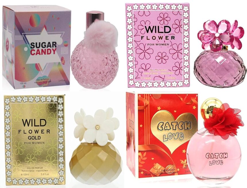 Women’s 4 Pcs Perfume Gift Set Of Catch Love Wild Flower Gold Sugar Candy Pour Femme Natural Spray Fresh Fragrance