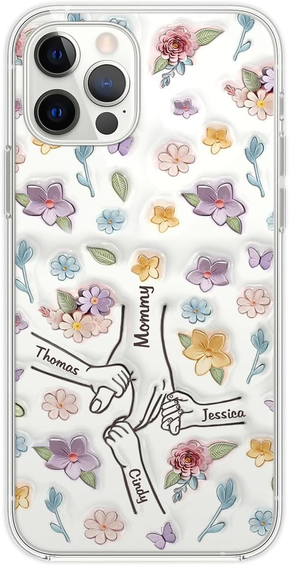 Wrappiness Custom 3D Inflated Effect Phone Case – Personalized Hand in Hand Clear Case for iPhone 15/14/13/12/11 & Samsung Galaxy S23/S22/S21 – Gift for Mom Grandma