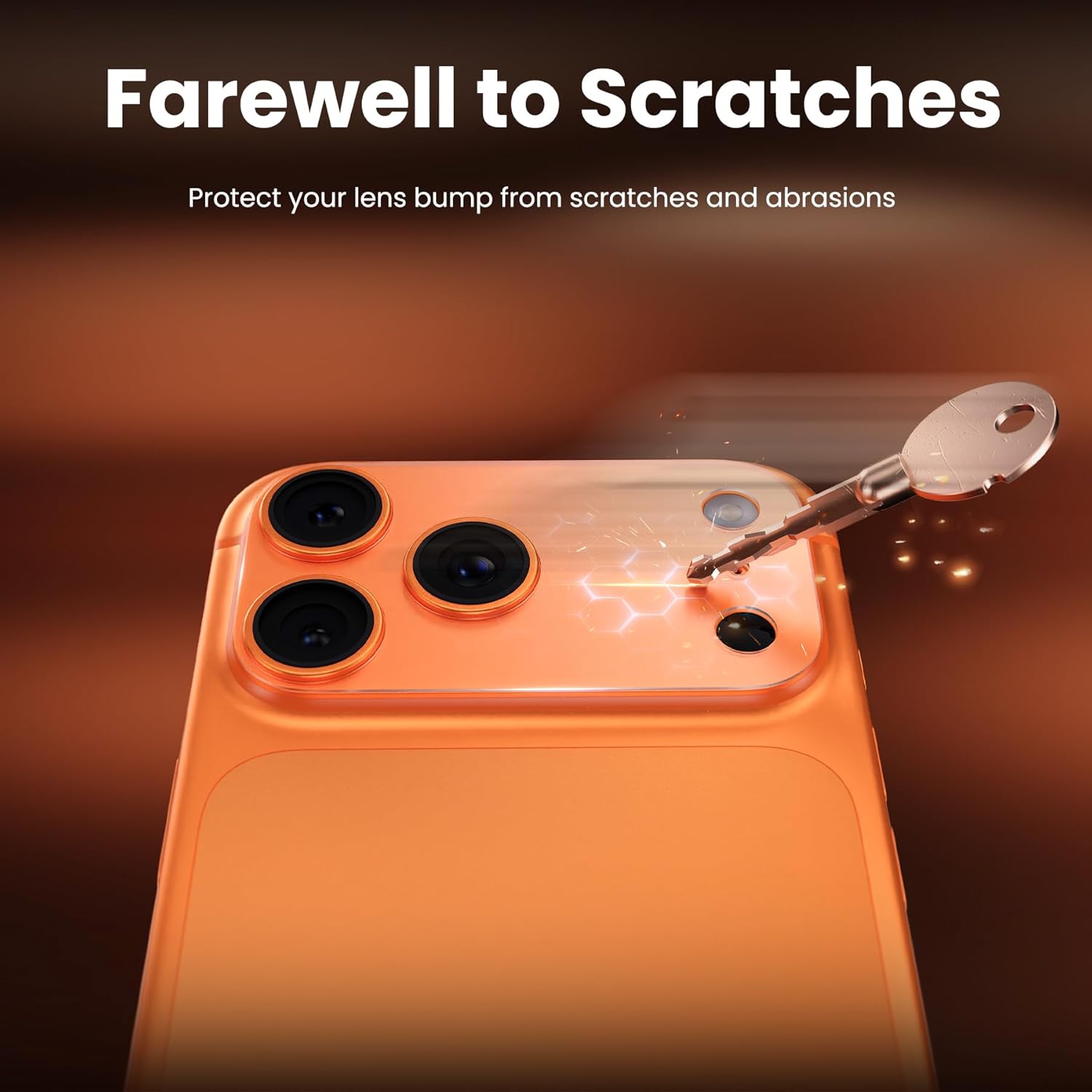 Scratch Resistant: The iPhone 17 Pro Max camera sticker has excellent scratch resistance. Using this camera sticker can protect your camera plateau from scratches from hard objects such as keys and coins during daily use, protect the smooth and brand new surface of the camera platform, and keep your phone looking beautiful.