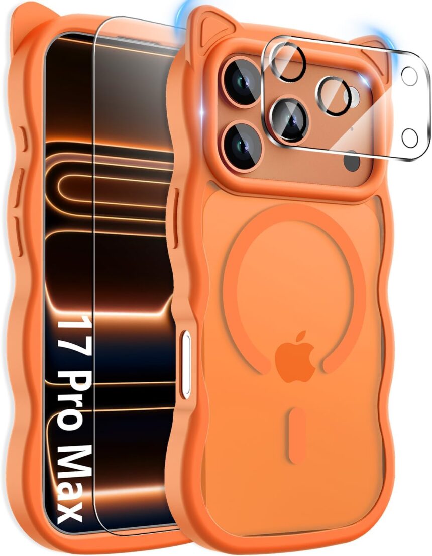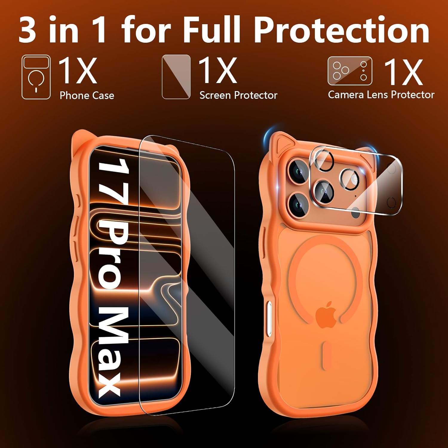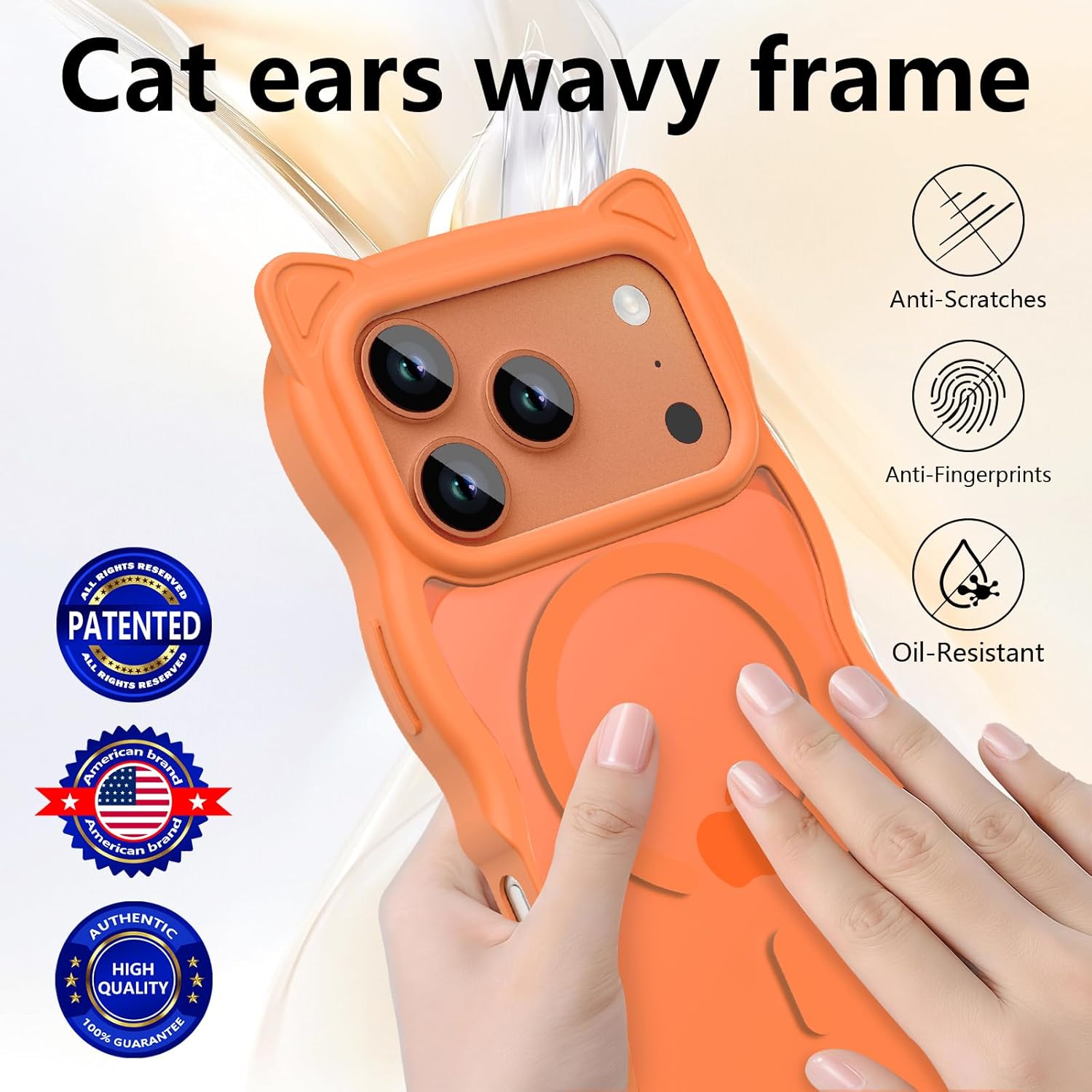 【Compatibility & Semi-transparent Visual Effects】This product is only compatible with the iPhone 17 Pro Max 6.9-inch (2025 release version). Please note: This cute cat-ear wavy phone case features a translucent matte design on the back, which will create different visual effects. The semi-transparent matte visual effects will be influenced by the color of your phone.