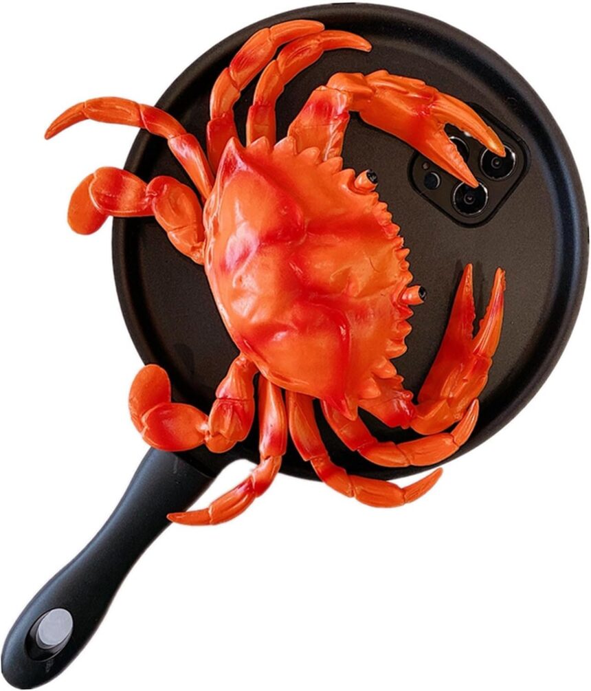3D Frying Pan Skillet Phone Case – Compatible with iPhone 16 Pro – Crabs Novelty Food Case
