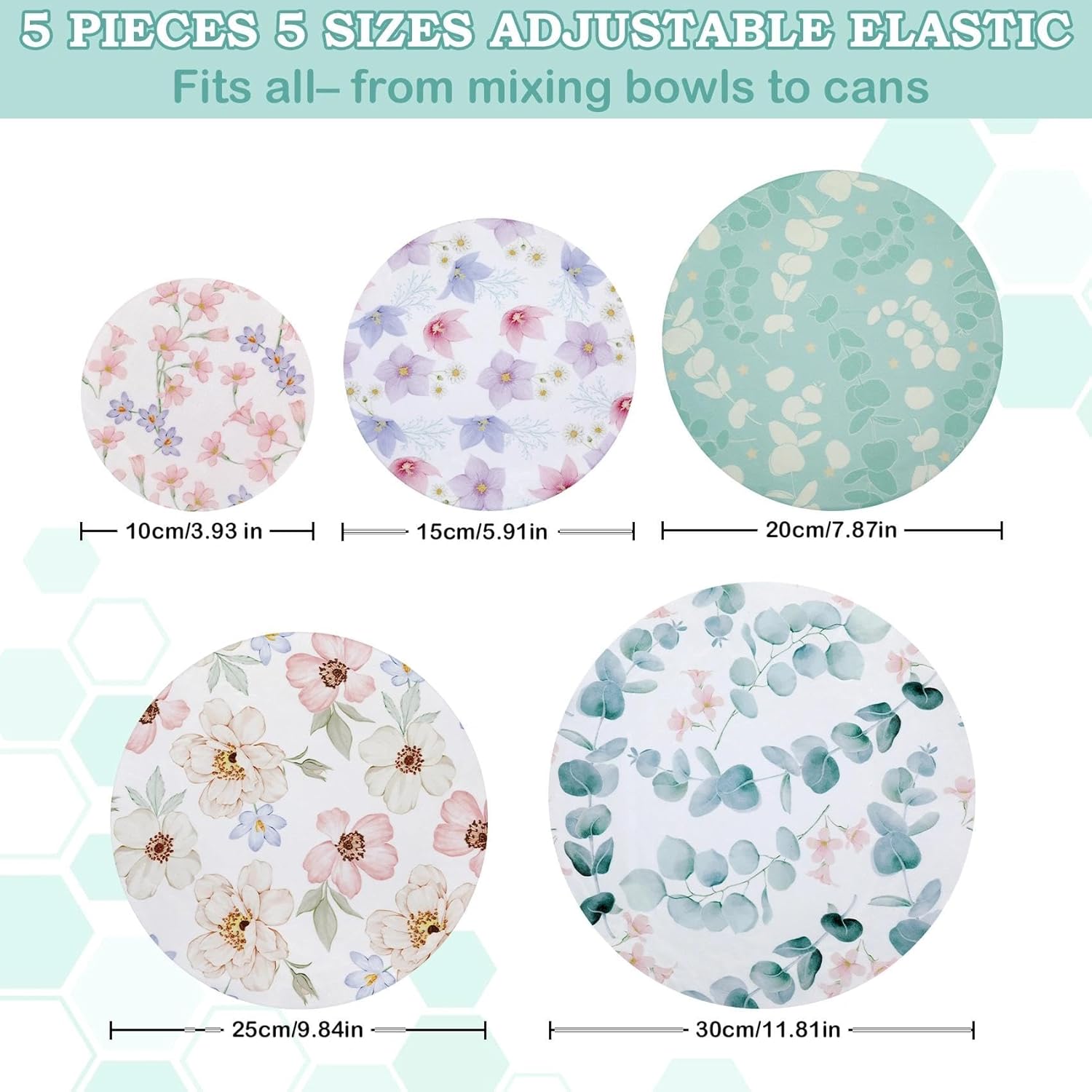 5 Sizes and Styles: 5 beeswax bowl covers (10cm/4″, 15cm/5″, 20cm/8″, 25cm/10″, 30cm/12″) – including 2 large, 1 medium, and 2 small – each with unique designs for stylish food storage, perfect for fitting a variety of bowls or containers.