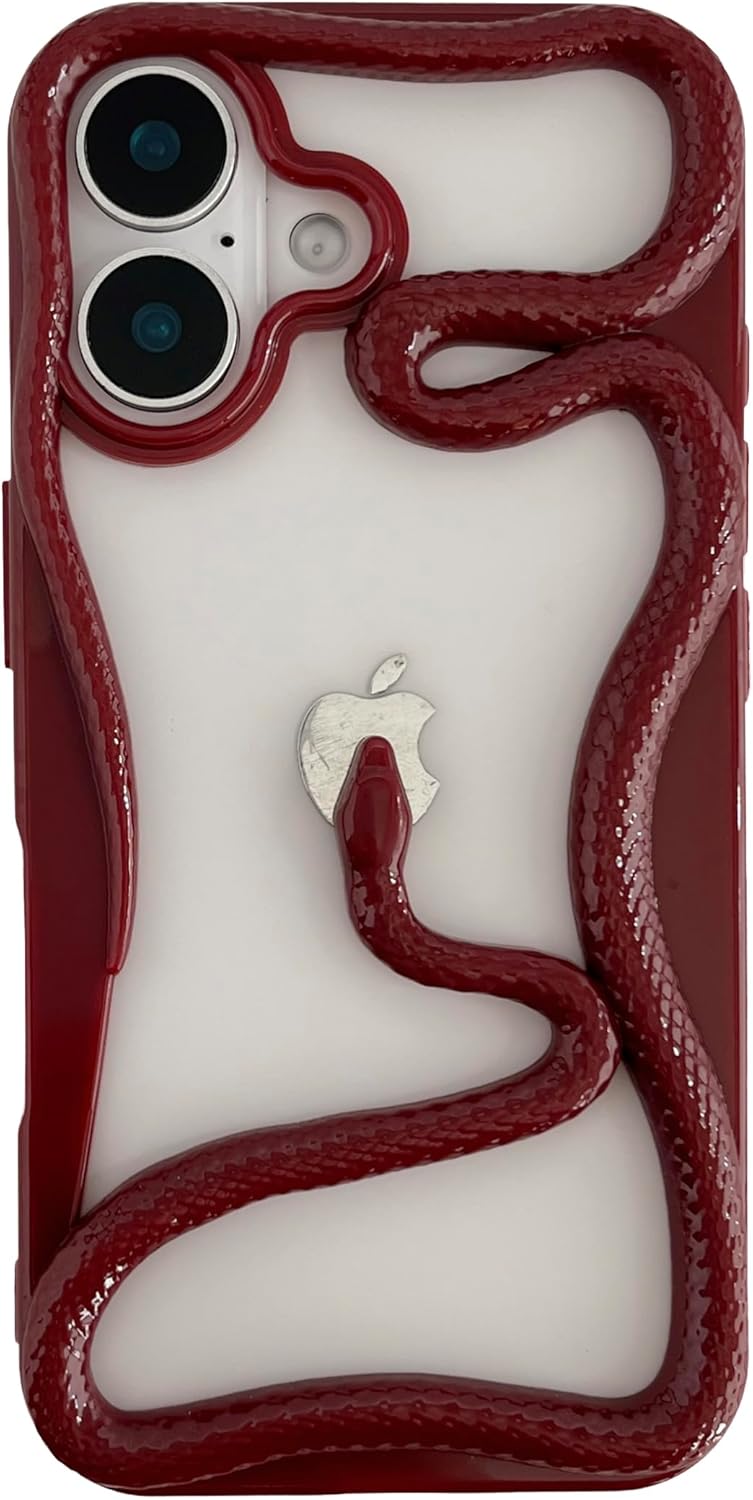 FLIRACON Cute Cool Hollow Solid Color 3D Snake Heat Dissipation Soft Phone Case Compatible with iPhone Case(Red,for iPhone 12)