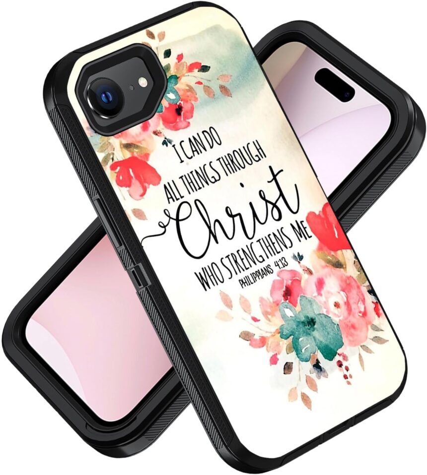for iPhone 17e Case & iPhone 16e Case, [Military Grade] Heavy Duty 3-Layer Shockproof Drop Protective Cover for iPhone 17e & iPhone 16e 6.1″, Christian Quote Bible Verse Philippians 4-13