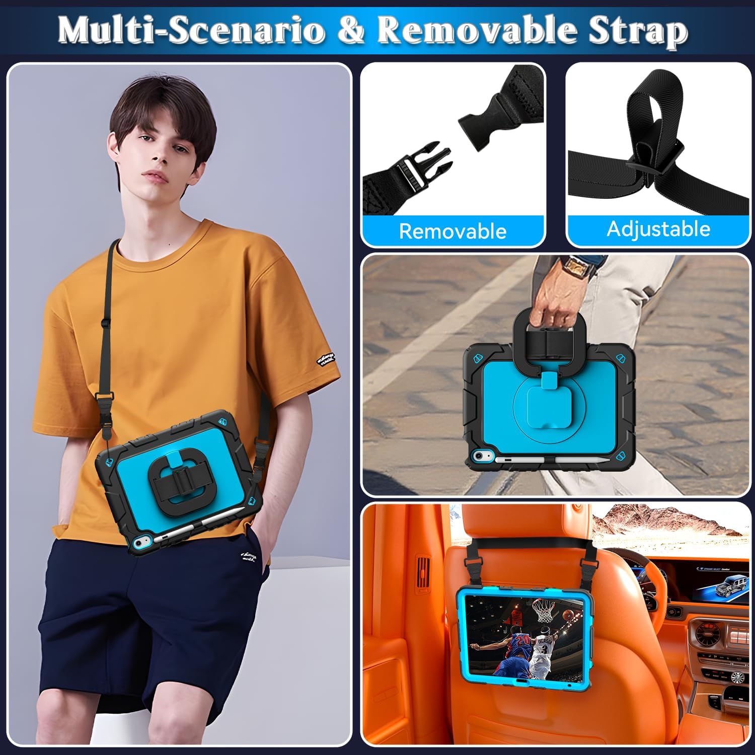 Rotating Stand & Hand Strap: iPad A16 case features a 360° rotate stand for multi-angle adjustment, allowing you use at the most comfortable angle. The hand strap design enables one-handed grip for stable tablet holding and enhanced convenience