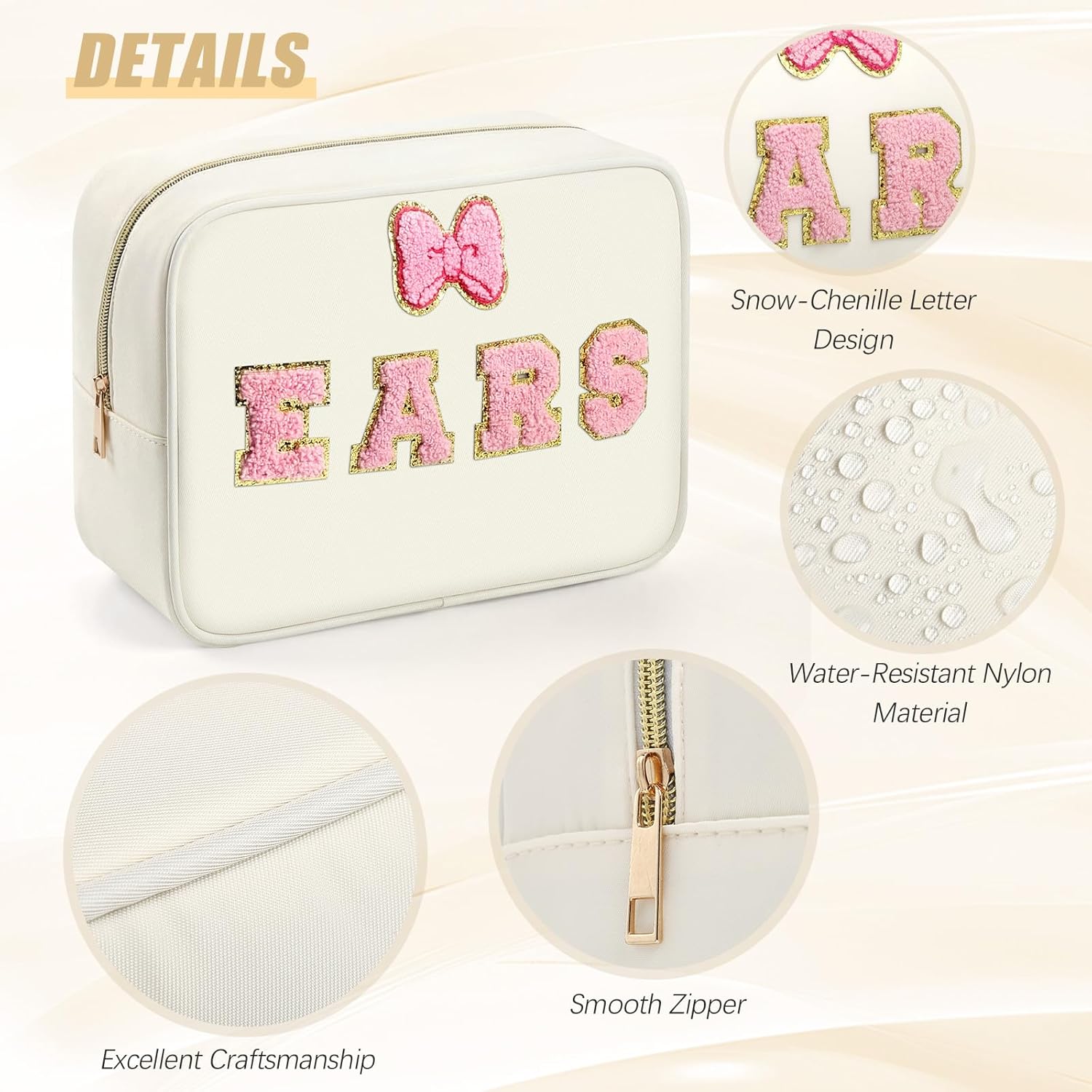 Must-have Gift for Theme Park Fans Collectors: whether you’re a frequent park visitor or building an ears headband collection, this nylon large chenille letter makeup bag makes storage both stylish and practical; An ideal gift for birthdays, holidays, park trips, or any day you want to keep them tidy and ready to go