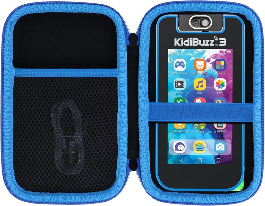 Lebakort Storage Case Compatible with VTech KidiBuzz 3 / KidiBuzz G2 Kids’ Electronics Smart Device KidiConnect (Black + Blue Case)