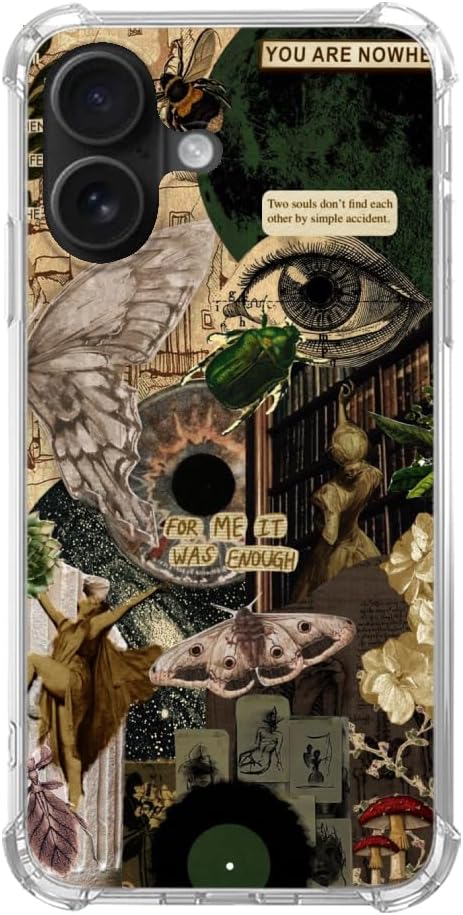 Nature Plants Insects Aesthetic Case Compatible with iPhone 16, Hippie Dark Academia Phone Case for iPhone 16, TPU Bumper Phone Case Cover