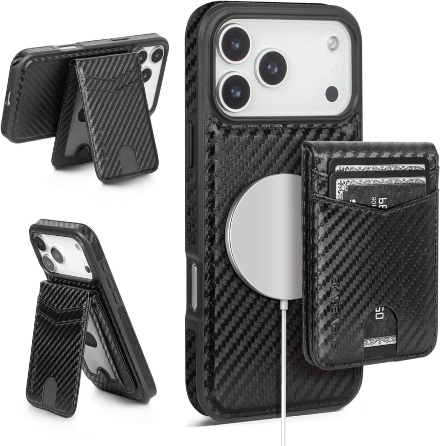 SkyEagle Compatible with Magsafe 2 in 1 Detachable iPhone 17 Pro Wallet Case with Card Holder for Women Men,Magnetic PU Leather RFID Blocking Flip Kickstand Credit Slots,for Apple 17 Pro,Carbon Black