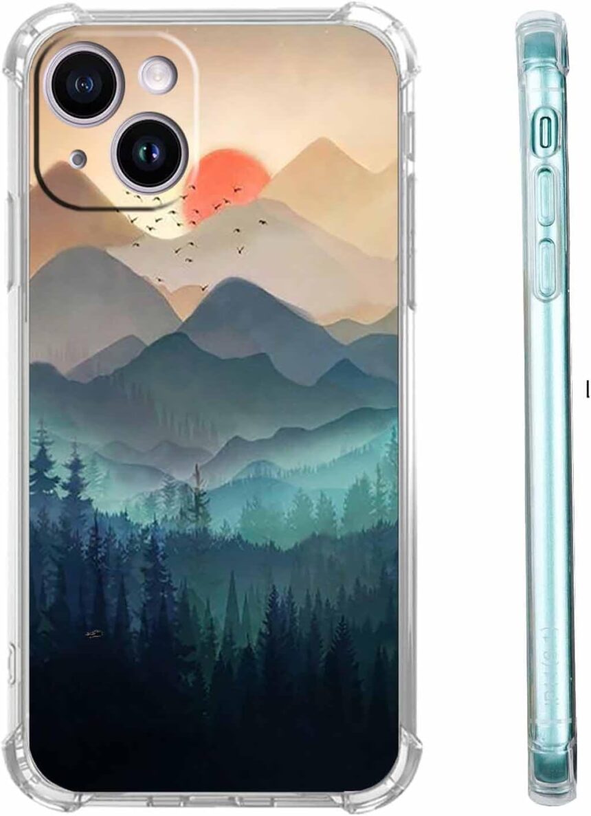 Sunset Nature Landscape Case for iPhone 14,Wilderness Night Art Painting,Soft TPU Full Cover Case for iPhone 14