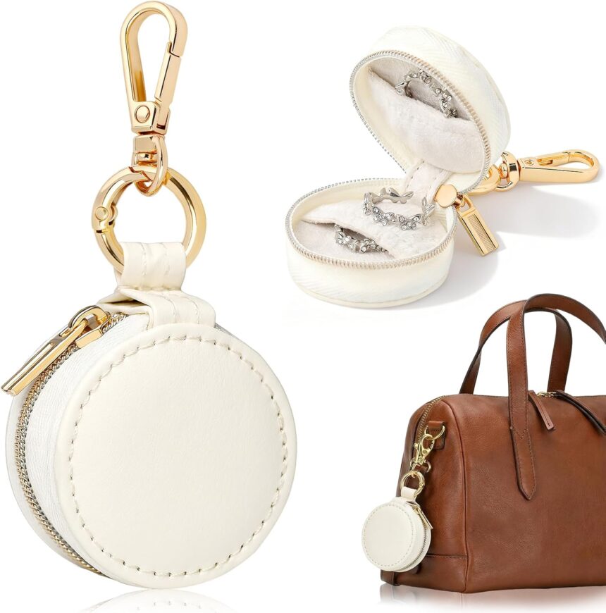 Travel Jewelry Box with Keychain – Mini Ring Holder and Jewelry Organizer Case for Women, Portable Compact Ring Box for Earrings, Necklaces & Travel Storage