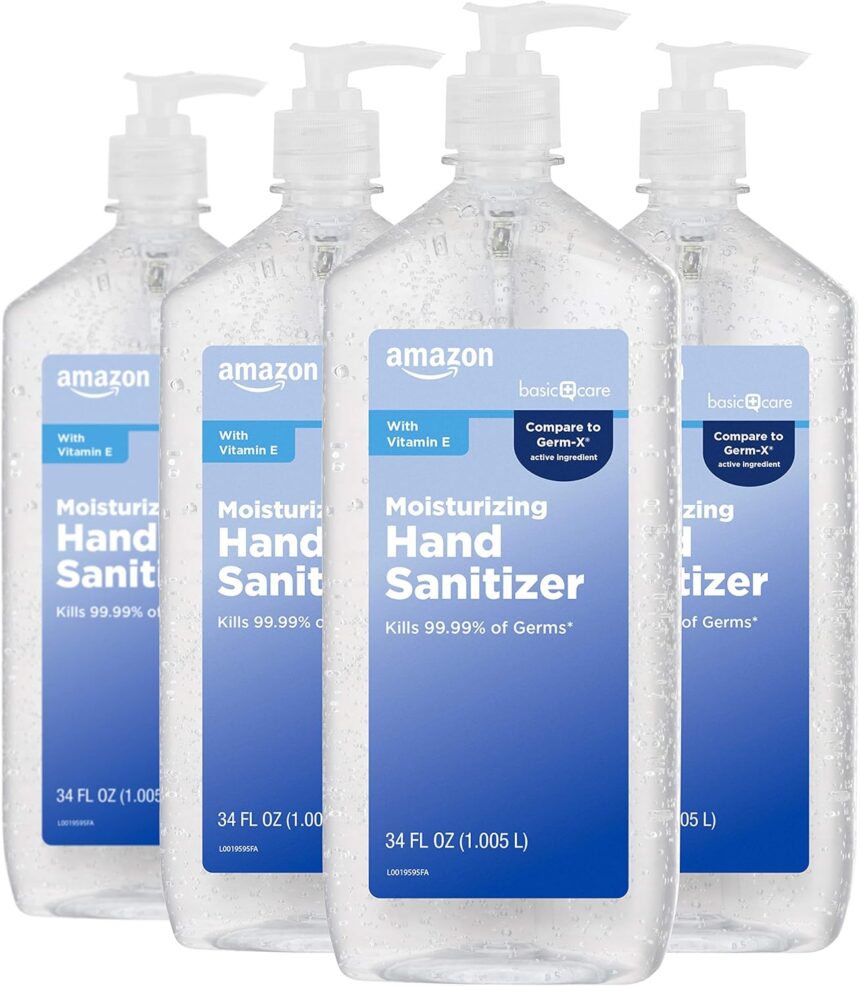 Amazon Basic Care – Original Hand Sanitizer 62%, 34 Fl Oz (Pack of 4)