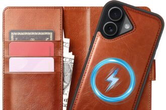 Phone purse has compartments incl. clear window, coin pocket, multi-card and photo slot. Zipper closure with magnetic snap button flap for protection.Perfectly sized for essentials like phones, passports, cards, cosmetics, etc. Compact yet spacious for efficient storage in one place.Roomy clear window caters to smartphone, allows effortless operation without taking it out. Phone stays protected and accessible.Matches with various clothing styles. Versatile design complements casual, vintage, or stylish outfits, adds touch of elegance to look.Equipped with advanced blocking material, effectively blocks RFID signals, safeguards valuable private information from unauthorized scans. Peace of mind assured.