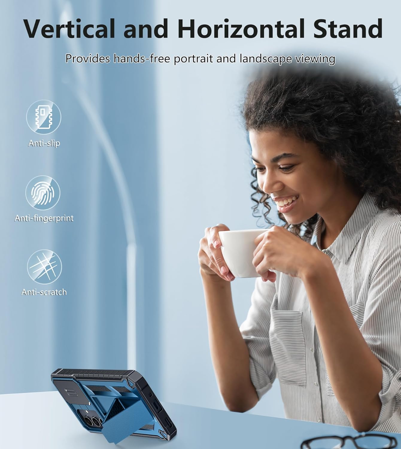 Built-in Kickstand: This for Galaxy A16/A17 case with hidden stand works perfectly both in vertical and horizontal stable stand angles. Convenient for reading, watching movies, playing games and face-time with your friends. Provides hands-free portrait and landscape viewing