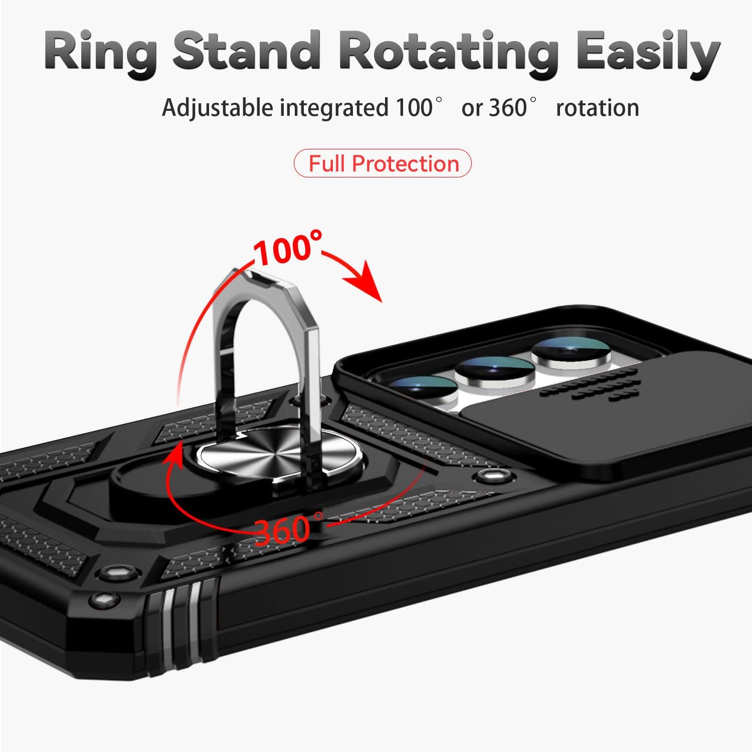 📱 【Durable and Delicate Phone Case】Armor Case with sliding camera cover specially designed for Samsung Galaxy S23 6.1 inch (2023 released). The precise cut out fits each button,camera,speakers and ports precisely, easy to press and access. ⚠️ Notice: Due to the metal ring on the back,the case will NOT work with wireless Charging function.