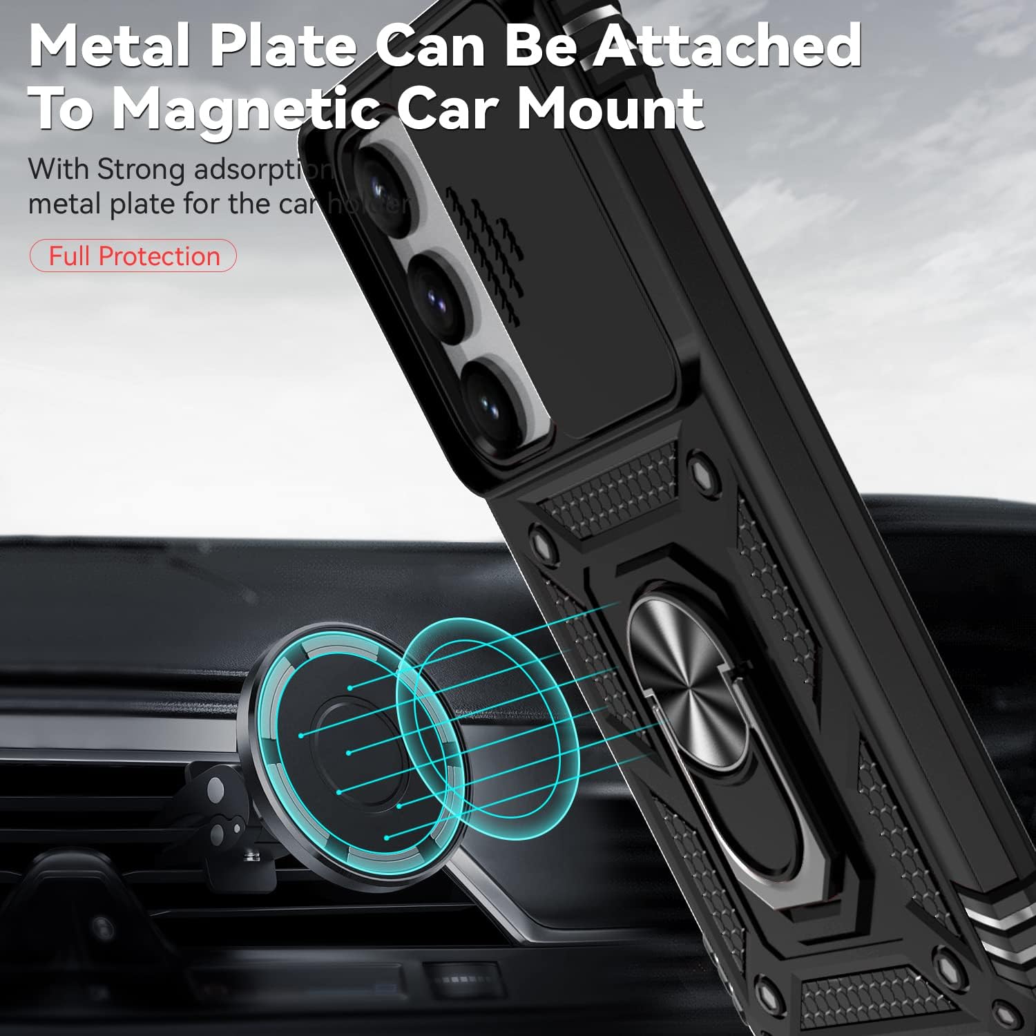 Magnetic Car Mount: With built-in metal magnetic sheet for stable adsorption, which can be directly adsorbed to the magnetic car mount holder. (Not includes the magnetic car mount holder)
