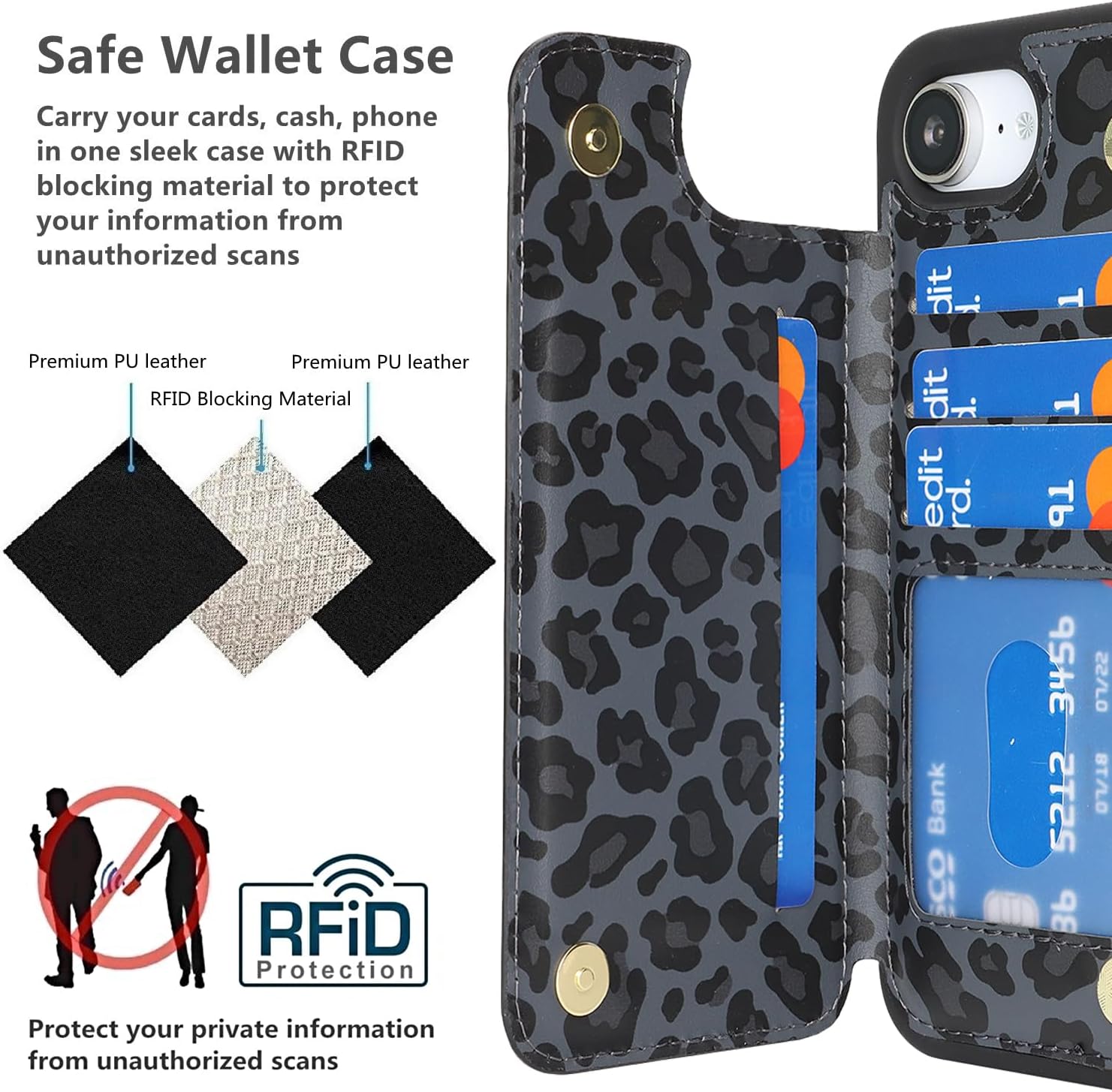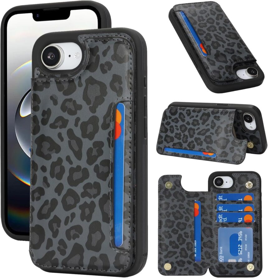 iCoverCase Compatible with iPhone 17e/16e Wallet Phone Case with Card Holder for Women Men, [RFID Blocking] Card Slots PU Leather Protective Wallet Case 6.1 Inch (Black Leopard)