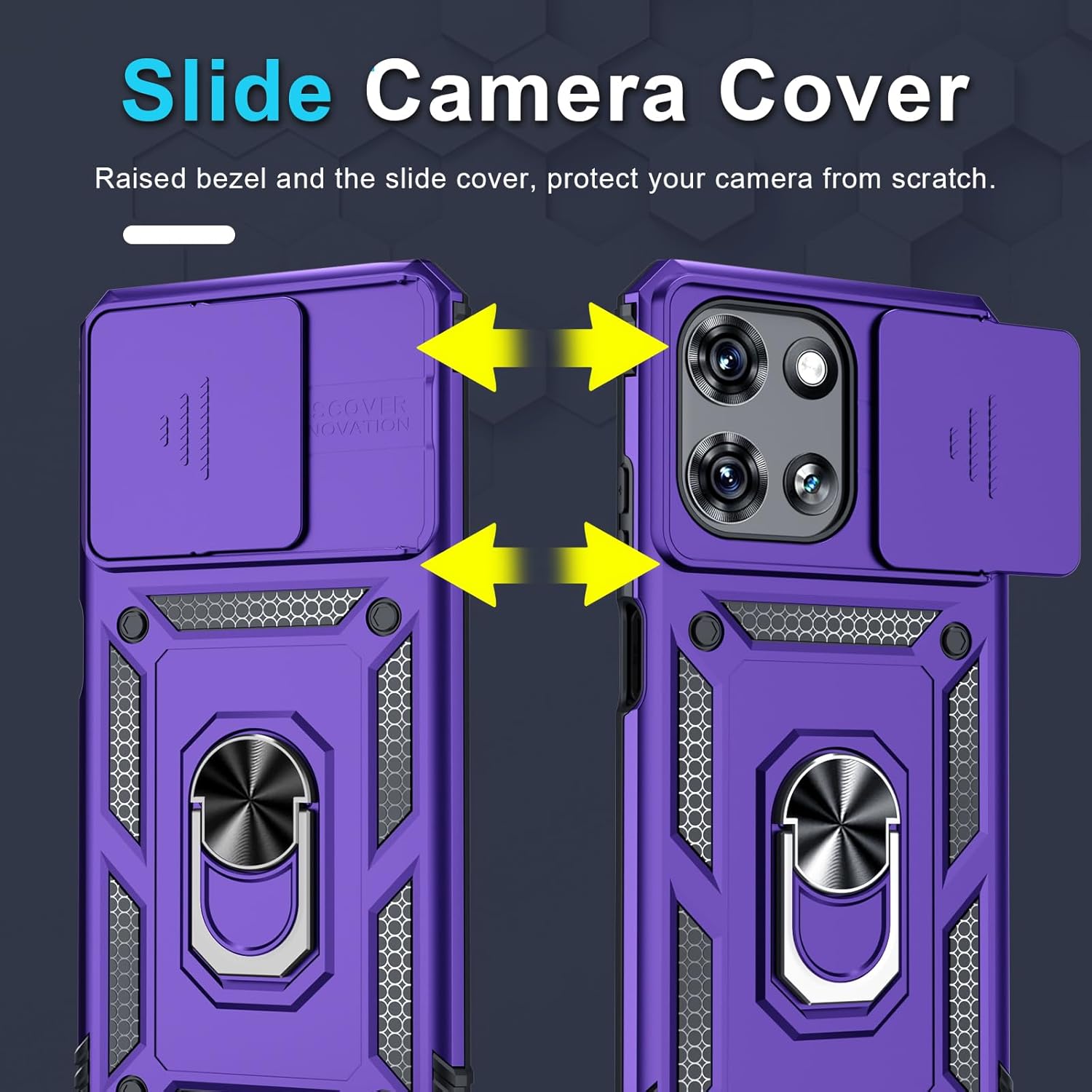 Unique Camera Window:The sliding lens cover and raised bezel protect your phone camera from scratches. It can slide smoothly left and right,perfect to hide the camera.Besides,the sliding cover is slightly locked on both sides and can not be slid at will