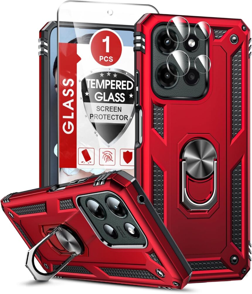 LeYi for Motorola G-2025 Case: Moto G 5G 2025 Case with Glass Screen Protector Camera Lens Protector Accessories, Rugged Shockproof Ring Kickstand Cellphones Unlocked Mobile Smart Phone Cover, Red