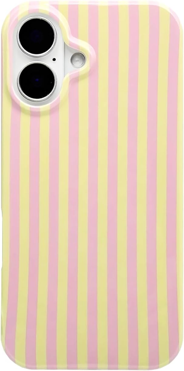 Cute Pink and Yellow Stripe Case: Perfect Compatible With iPhone 17 6.3 inch(NOT 17 Pro),it is not compatible with other models.Please check your mobile phone model before purchasing.