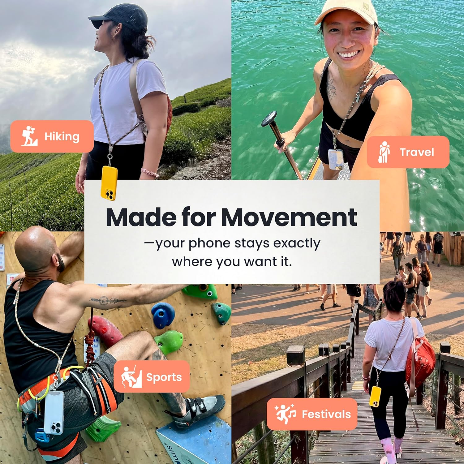 Versatile 2 in 1 Carry System: Switch easily between a wrist strap and a neck lanyard depending on your needs offering secure hands free phone carry for travel festivals workouts commuting and busy days with quick access and extra phone safety
