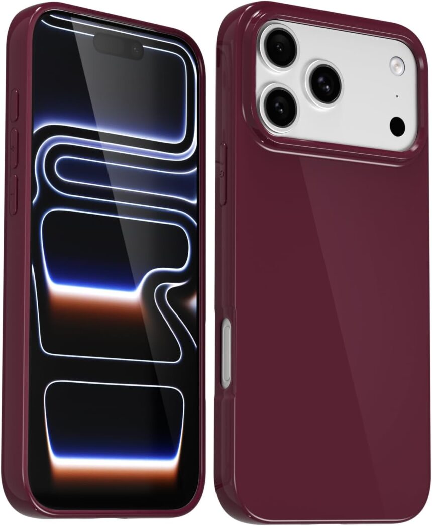 Svanove for iPhone 17 Pro Max Case Silicone, Glossy Soft Rubber Gel Jelly Cute Protective Plastic Simple Plain Phone Case Cover for Women Girl, Slim Thin Flexible Shockproof TPU, Burgundy Wine