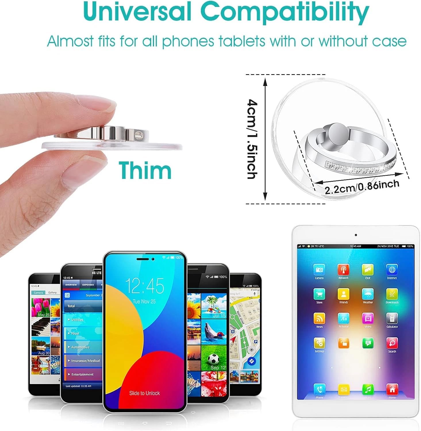Phone Ring Stand: Prop up your device on the table, free your busy hands to watch TV or video.