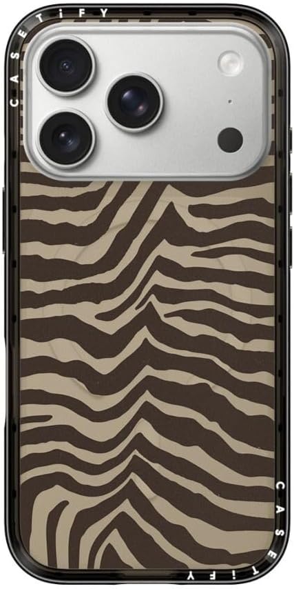 CASETiFY Compact iPhone 17 Pro Case [Slim and Sleek/Compatible with Magsafe / 4 ft. 2X Military Grade Drop Protection] – Zebra-Brown – Clear Black