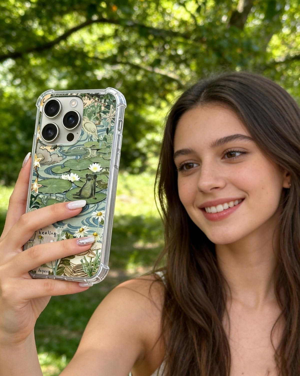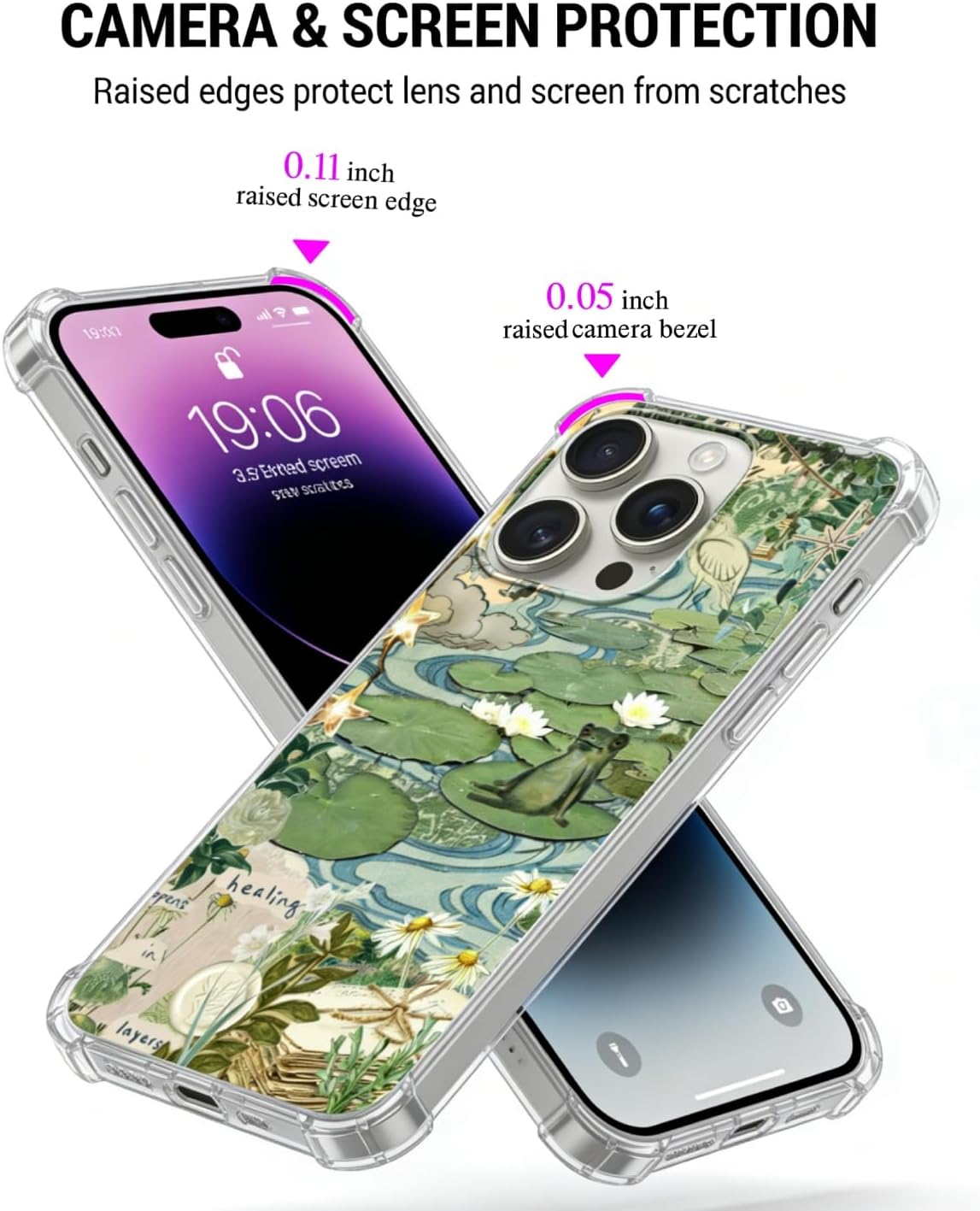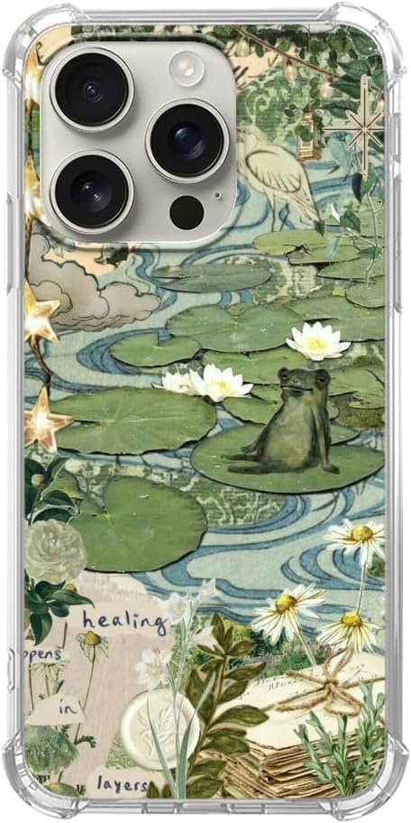 Cute Frog Lotus Pond Phone Case Compatible with iPhone 16 Pro Max, Nature Green Aesthetic Phone Case for iPhone 16 Pro Max, Trendy Cool TPU Case Cover