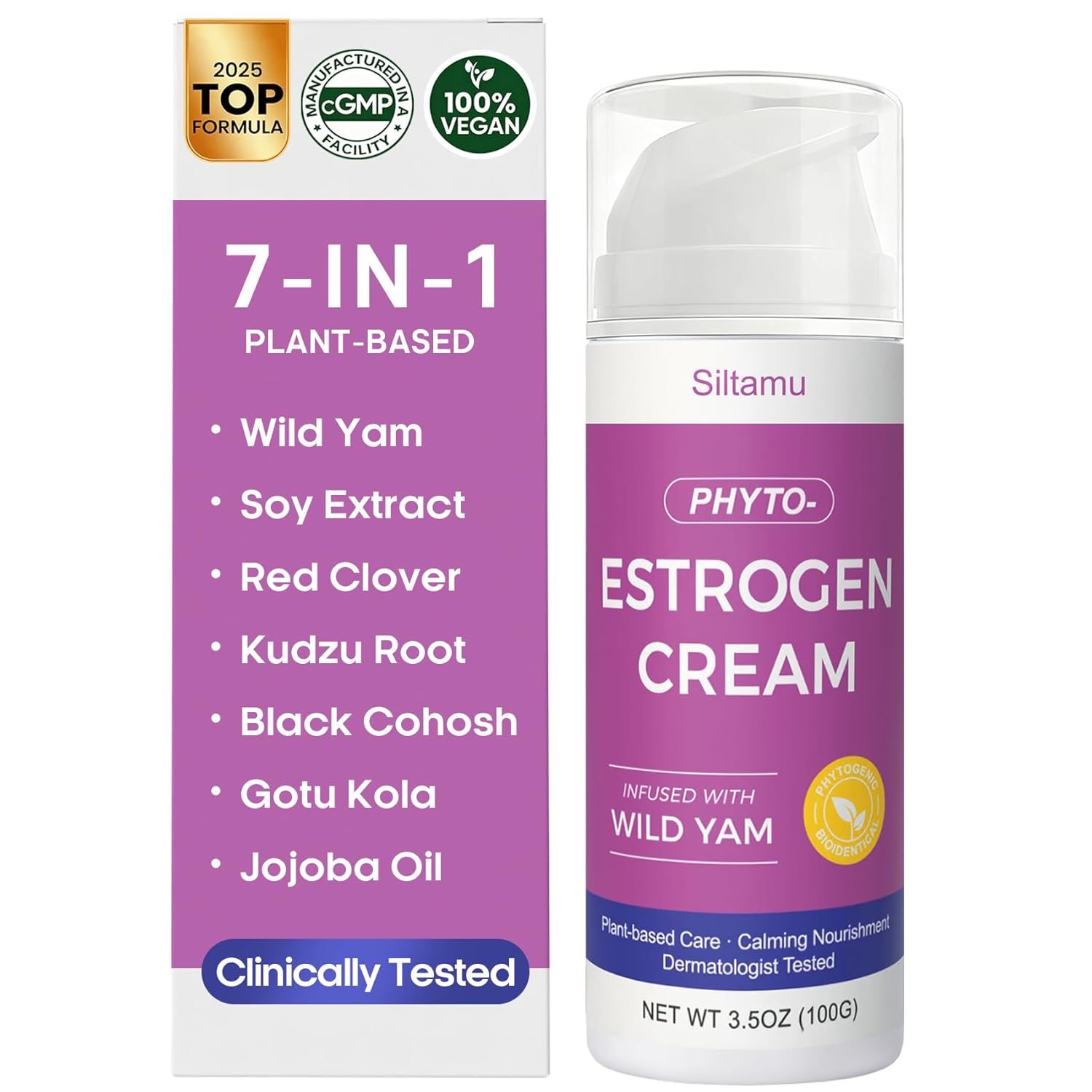 🌿 Plant-Based Bioidentical Estrogen Cream for Women – Formulated with natural phytoestrogens like Pueraria Mirifica, Soy Isoflavones, and Red Clover Extract to help promote balanced skin hydration and elasticity, ideal for women during menopause or hormonal changes. This topical estrogen cream for women provides gentle, plant-derived support.