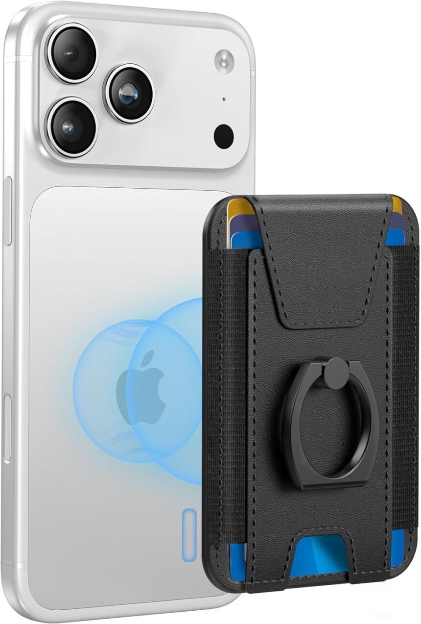 Strong Magnet: Keeps your cards secure.Sturdy Ring: Great for selfies and as a stand.Elastic Strap Design: Holds 3 to 7 cards comfortably.