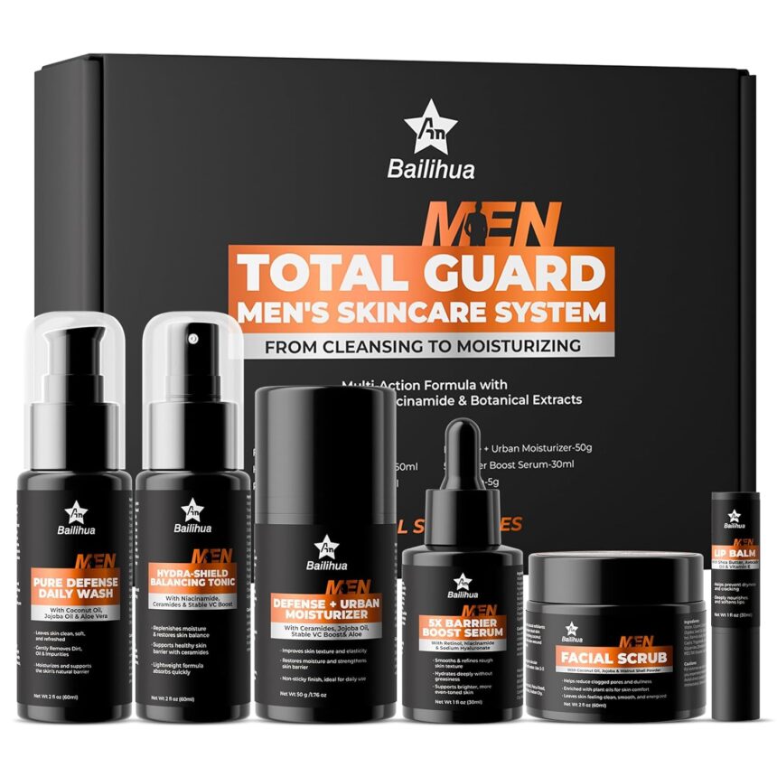 ALL-IN-ONE DAILY FACIAL REGIMEN This 6-step kit includes a Face Cleanser (60ml), Exfoliating Scrub (60ml), Hydrating Toner (60ml), Anti-Aging Serum (30ml), Moisturizing Cream (50g), and Lip Balm (5g). Gentle on skin and designed for all skin types.