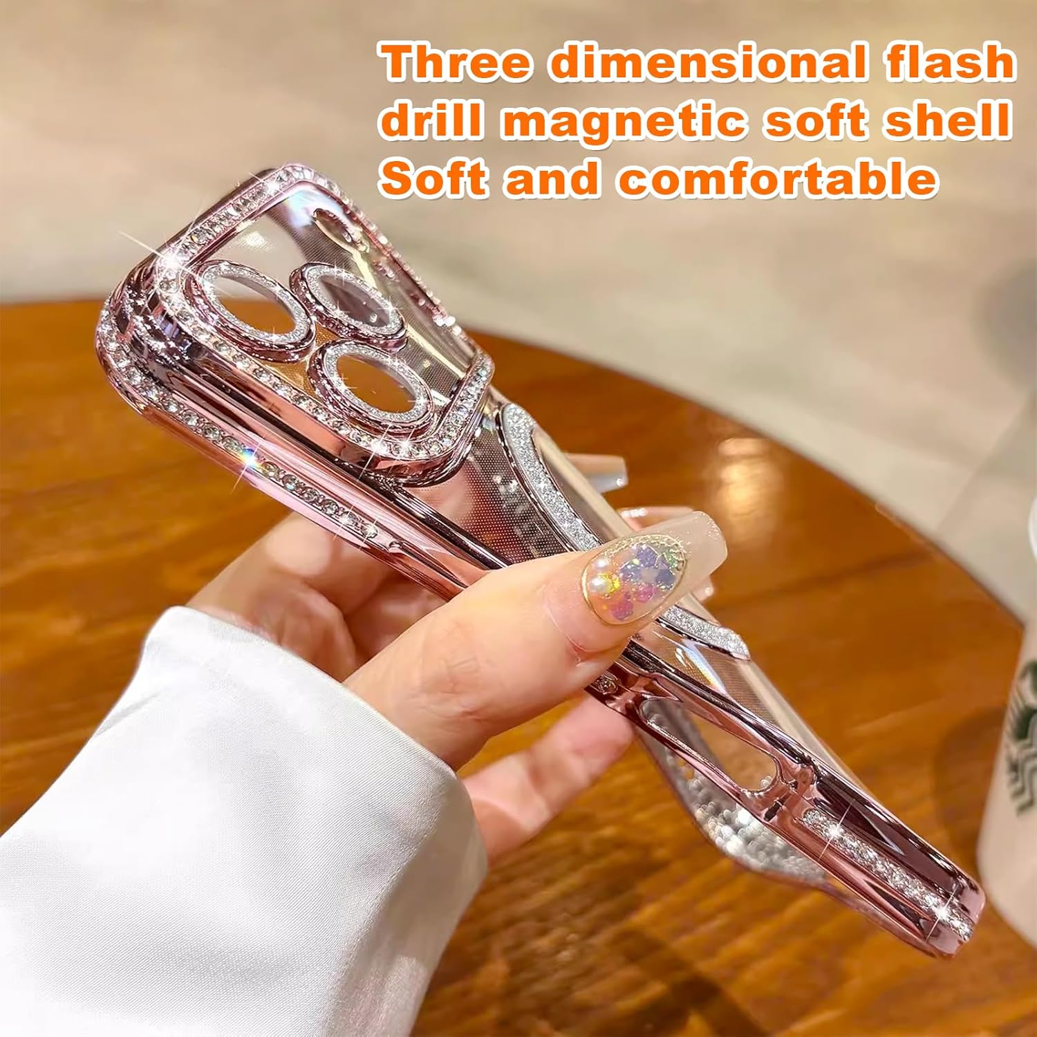 Compatibility :Glitter Magnetic Suction phone Case for iPhone 17 Pro Max 6.9 inch, cutouts on all buttons and ports to ensure easy access to all funbuilt-inctions for girls, women