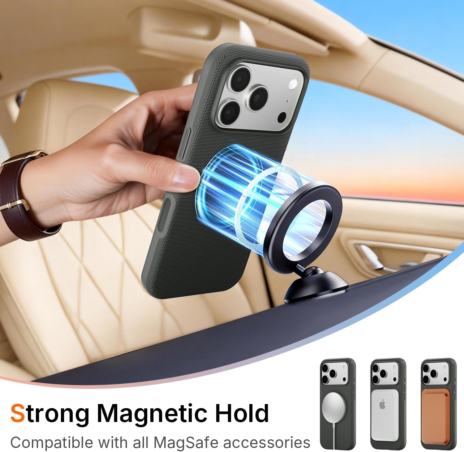 Compatible with MagSafe Accessories: Built-in magnetic ring ensures precise alignment, providing stable attachment and efficient wireless charging without removing the case