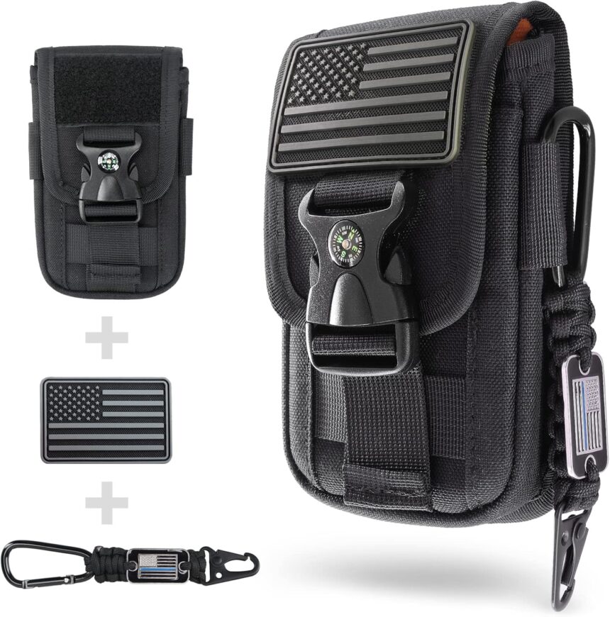 Phone Pouch with Versatile Compass: Phone Holder has an innovation to the front buckle with a humanity design, a built-in compass on the buckle could lead you in the right direction when it’s placed horizontally. Utility molle accessories for you.