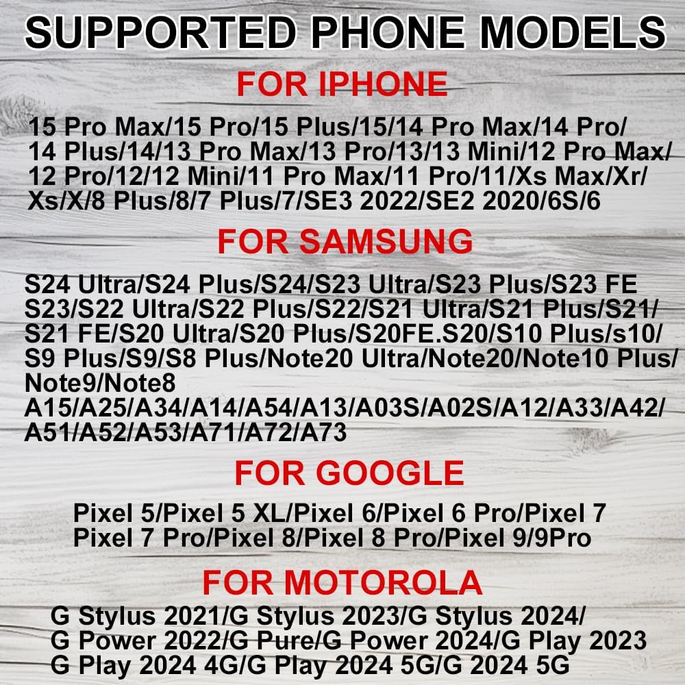 COMPATIBLE with iPhone 15;15 Plus;15 Pro;15 Pro Max;14;14 PRO;14 PLUS;14 PRO MAX;13 PRO MAX;13 Pro;13;13 Mini;12 Pro Max;12,12 Pro;12 Mini;SE (2020);11 Pro Max;11 Pro;11;Xs Max;Xr;X,Xs;7,8 Plus;7,8;6,6s Plus;6,6s;Samsung Z Flip 3;4;5,Galaxy S24;S23;S22;S21;S20 FE;PLUS;ULTRA;S10;S9;S8,A15;A25;A34;A14;A54;A03S;A53;A02S;A10E;A13;A32;A42;A51;A71,Note 20;10;Plus;Ultra
