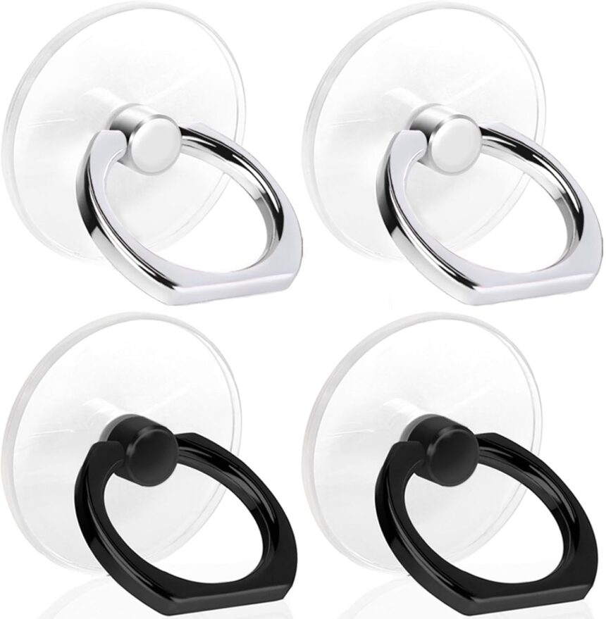 4 Pack Jsoerpay Cell Phone Ring Holder, Transparent Phone Ring 360°Rotation Finger Ring for Phone, Clear Phone Ring Finger Kickstand Compatible with Most of Phones, Tablet and Case, (2 Silver+2 Black)