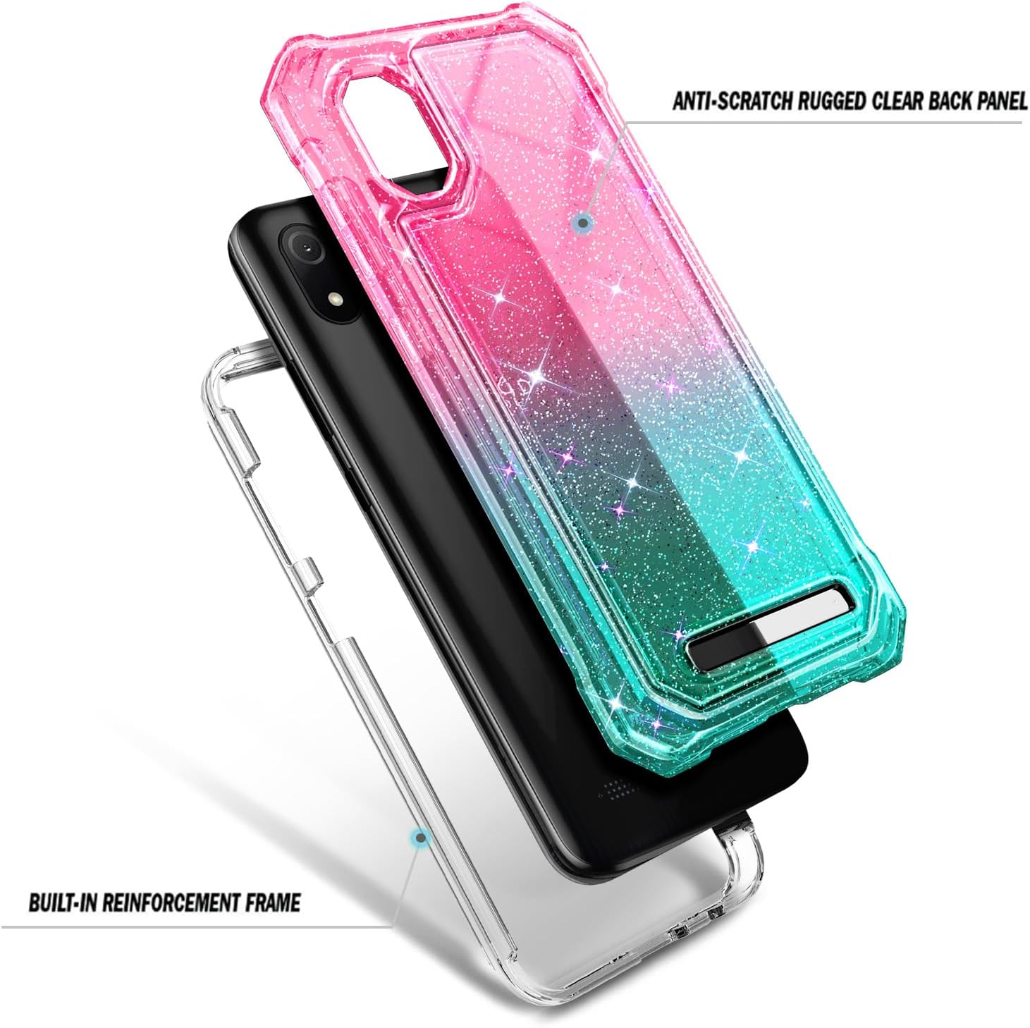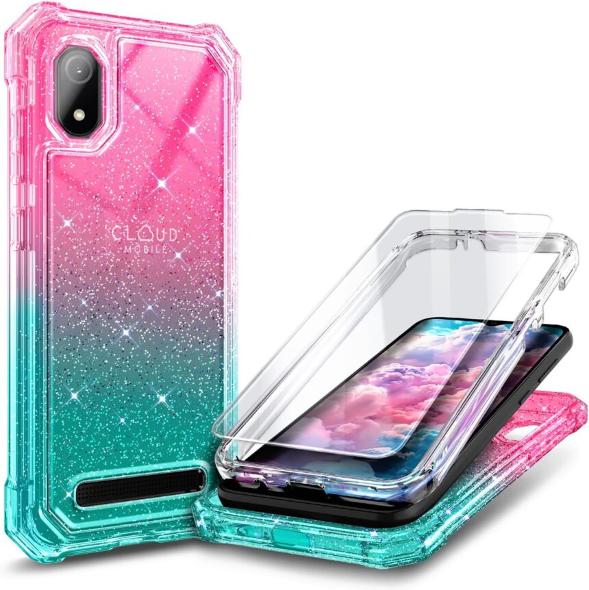 Designed for Cloud Mobile Stratus C8 Phone Case with [Tempered Glass Screen Protector], Full-Body Protective Shockproof Rugged Bumper Cover Case (Glitter Pink/Aqua)