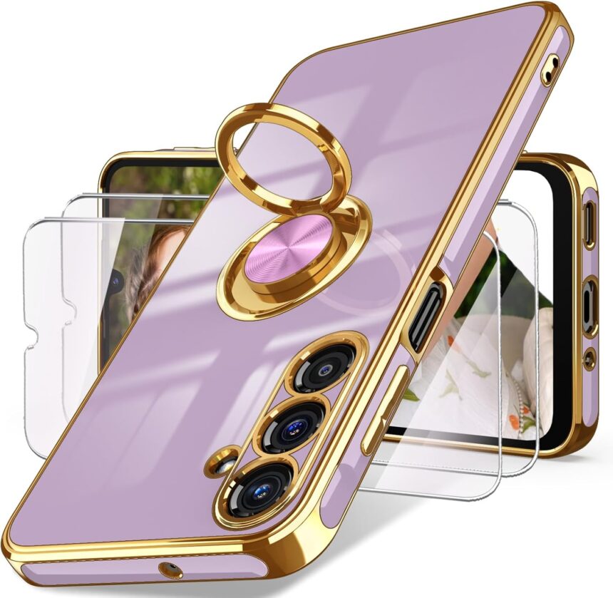 Answer: Yes, built-in ring holder not only for hands-free viewing, but also support car magnetic mount. NOTE: Due to the metal kickstand wireless charging is NOT compatible.